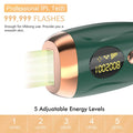 - Adjustable Settings: Features 5 intensity levels to customize treatment for different areas and hair types, ensuring safe and effective results.